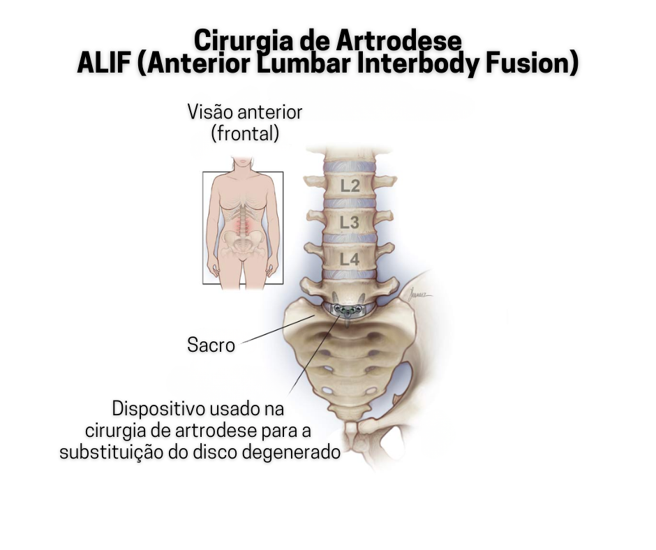 A sigla ALIF vem do inglês Anterior Lumbar Interbody Fusion, que pode ser traduzida como artrodese lombar anterior. Nesse procedimento, o acesso à coluna é feito pela parte anterior do corpo (a frente), geralmente através do abdômen.