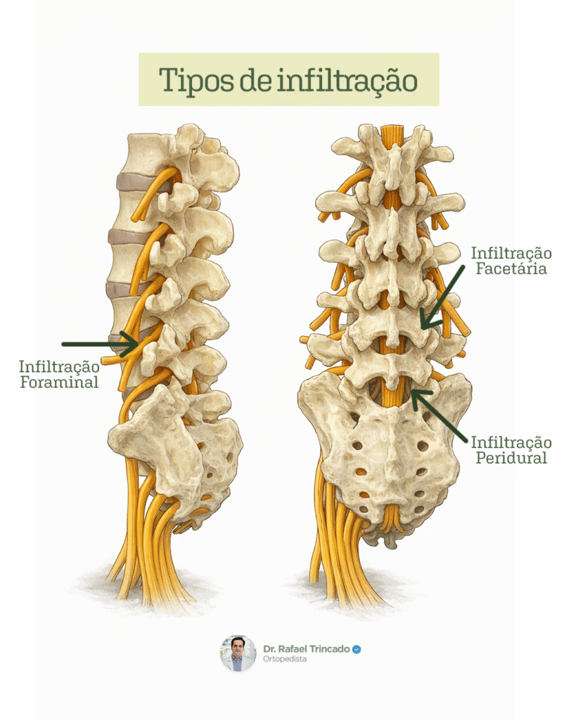 A infiltração foraminal é direcionada ao forame, local por onde o nervo sai da coluna.